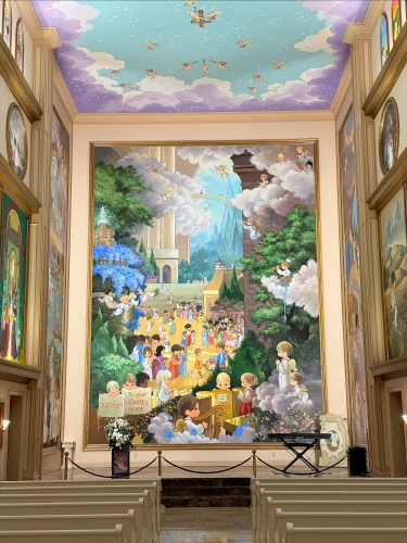 I went on a dare. My friend Brett, an English professor and poet with a doctorate from Yale, had once visited the Precious Moments Chapel on a family road trip. He thought that I, who also boasted a fancy degree and who formally studied art history, might get some kicks out of visiting “America’s Sistine Chapel.” After all, we sophisticated Christians, the kind who bend over backwards to defend contemporary art and literature, often do so at the expense of the Christianity that reared us. In fact, so much time is devoted to making fun of lesser Christians (especially when they don’t vote as we wish they would) that the practice could qualify as a professional sport. Mockery can result in decent writing, whether an academic article calling out “baptized capitalism, where a religious sheen enhances the magic and greases the wheels of commerce,” or a more casual think piece dripping with sardonic disdain. Brett was planning to call his piece “Specious Moments.” The Precious Moments Chapel is in Carthage, Missouri, and like Cato the Elder we might have been tempted to say “Carthago delenda est” (Carthage must be destroyed).