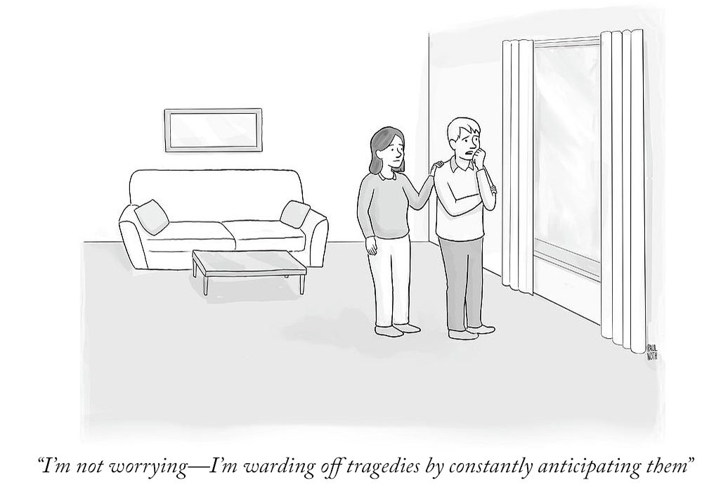 Why, you ask? Well, for starters, fear is our most primal emotion. It’s built into our DNA. Our ancient ancestors did not have the luxury of having only fear itself to be afraid of, but also wolves. Fear was what kept you alive back then. And little has changed. With a few more weeks of pool season left, it feels like the only thing keeping my one-and-a-half-year-old alive is my fear which prompts me to grab him as he launches himself into the deep end. Fear’s power is in its ability to show how little control we have over everything — our loved ones, our careers, our health. The reason why anxiety is so unconquerable is because of its parasitic, shapeshifting nature. As soon as one fear subsides, another takes its place. Whether you are single, married, a parent or grandparent, there is always something to be afraid of.