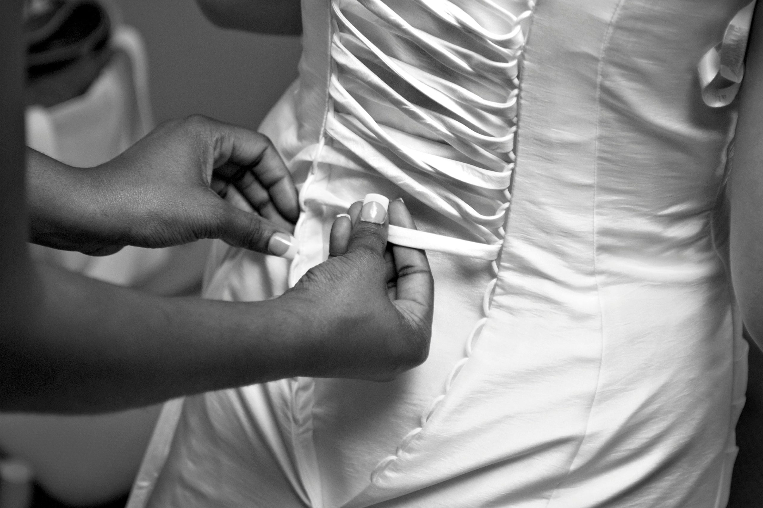 The dress was exquisite. An ivory silk bodice and underskirt anchored delicate layers of a pleated, tucked chiffon, flowing out beneath a banded empire waist adorned with nearly a thousand hand-knotted satin fabric pearls. It was exactly what I wanted: elegant, understated, one of a kind. I only wore it for a few hours, but the care it carried was immeasurable.