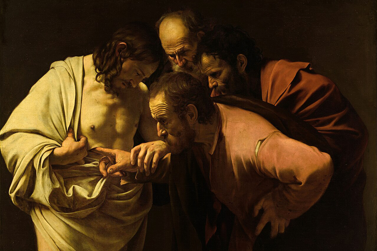 A week later, his disciples were again in the house, and Thomas was with them. Although the doors were shut, Jesus came and stood among them and said, “Peace be with you.” Then he said to Thomas, “Put your finger here and see my hands. Reach out your hand and put it in my side. Do not doubt but believe.” Thomas answered him, “My Lord and my God!” (Jn 21:24-28)