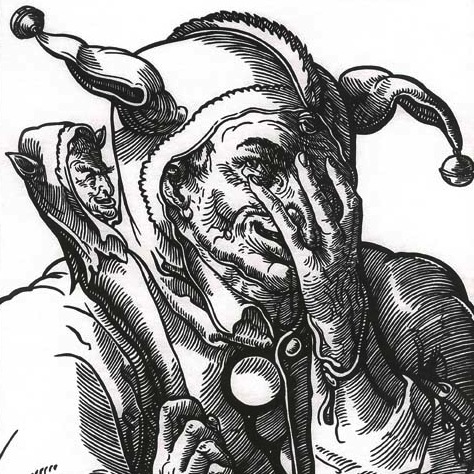 He has no illusions and does not seek consolation in the existence of natural or supernatural order, which provides for the punishment of evil and the reward of good… But the Fool does not desert his ridiculous, degraded king, and accompanies him on his way to madness. The Fool knows that the only true madness is to recognize this world as rational.