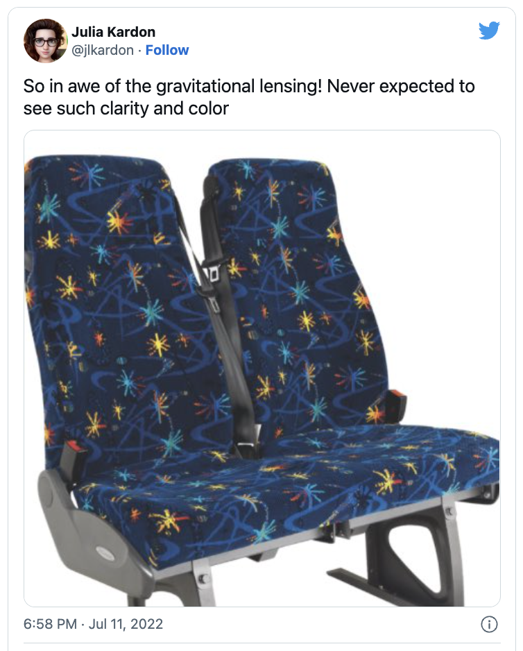 I don’t really care about the James Webb Telescope images. And before you come for my Gen-Z, curtain-banged head I want to provide some context for my controversial statement. I do think that the invention of a telescope that allows us to see galaxies and stars from 7,600+ light years away is quite a spectacular feat. It’s cool to see what human beings are capable of creating in order that we may explore the universe; and I tip my hat to whoever worked to bring these images to light.