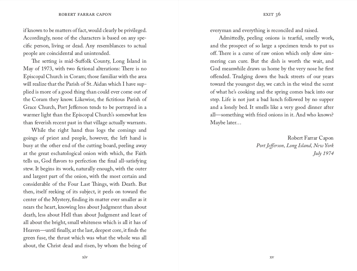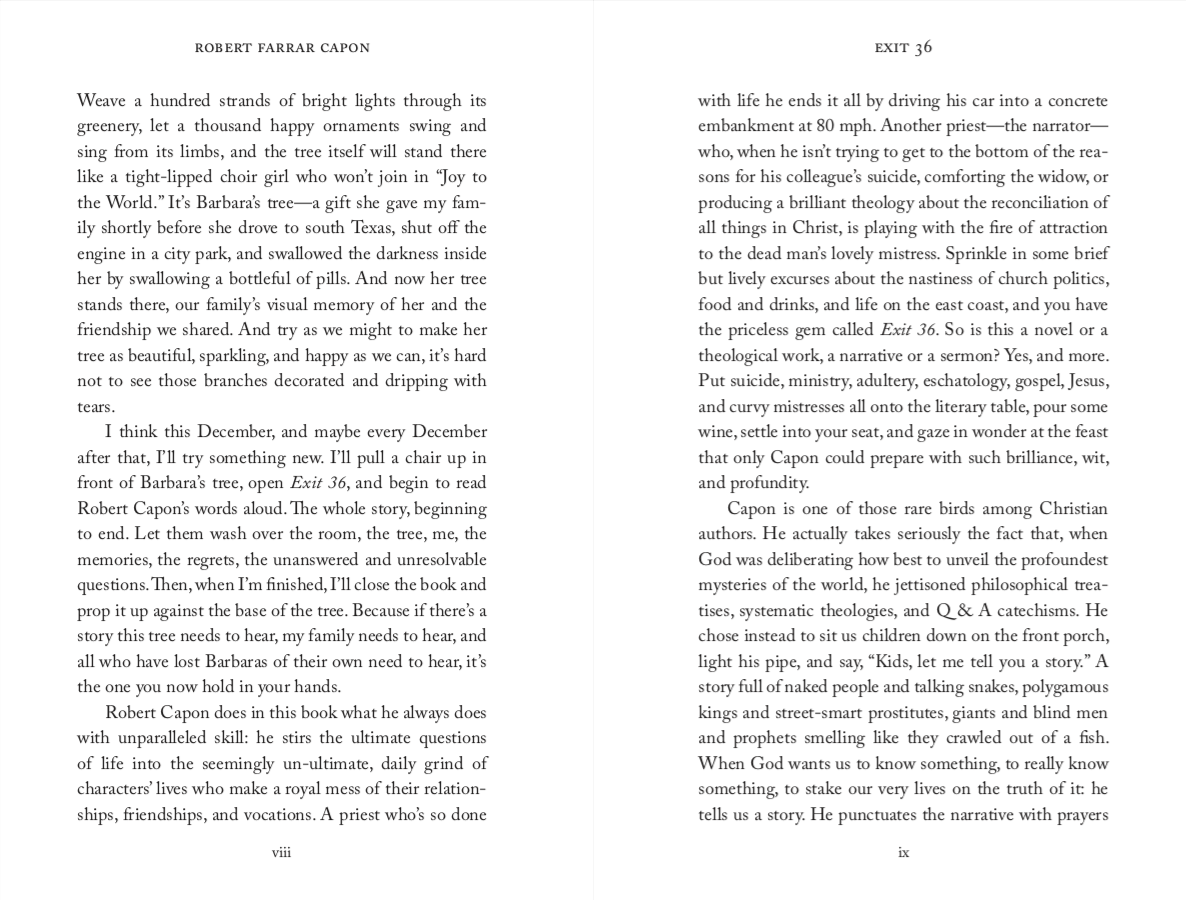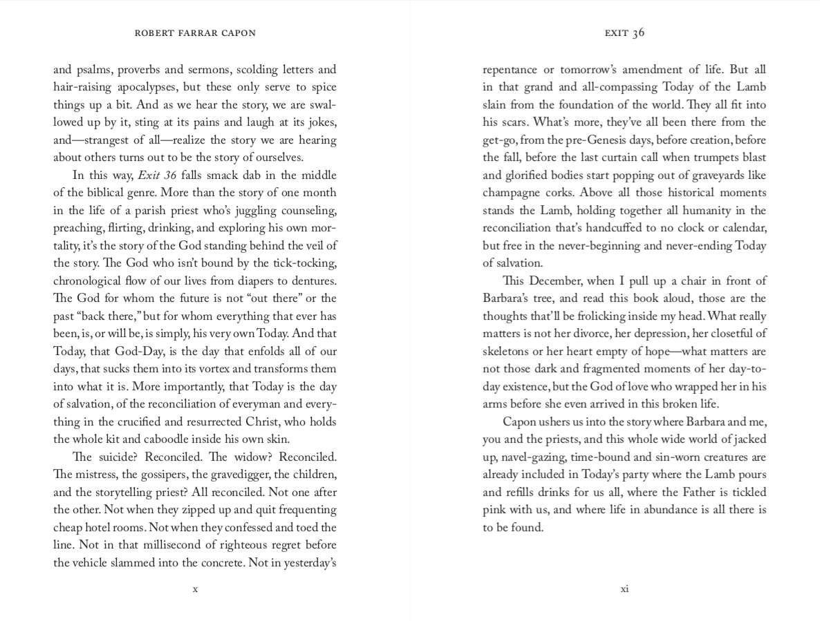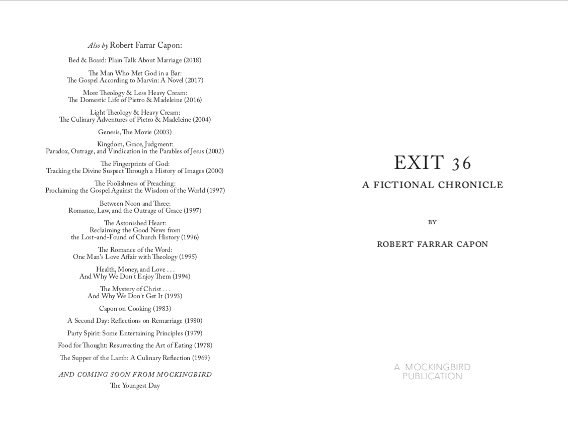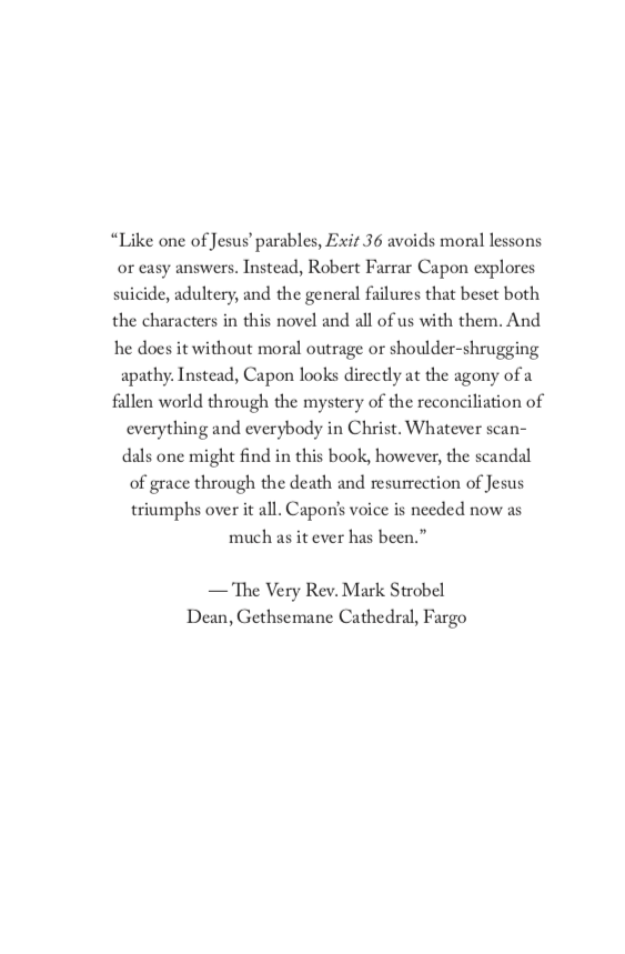 When Father William Jansson hears the unexpected confession of a dead priest’s mistress, he finds himself caught in a web of secrets and mysteries. Exit 36 is Robert Capon’s probing investigation of death, judgment, Hell, and Heaven.