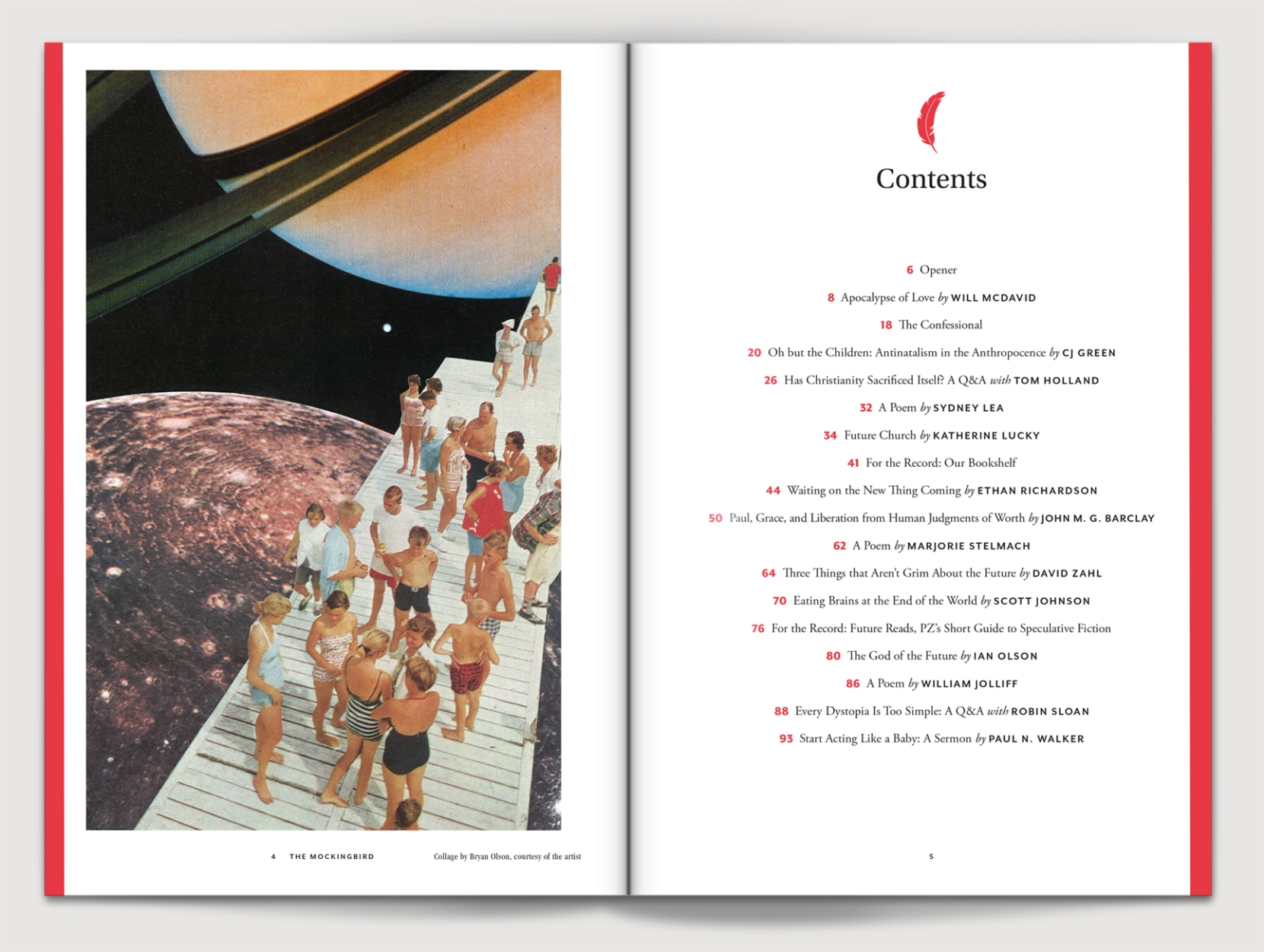 In this issue, we explore a long history of bleak futures, and the one certain future we’re promised to inherit. We have interviews with science fiction novelists and classical historians; essays on the future of church architecture, Amazon orders, and the human race itself; and amid all the grim prophecies and future job searches, we can tell you one thing: there is a difference between blind optimism and real, lasting hope. The future won’t be so bad, dear reader; let us tell you why.