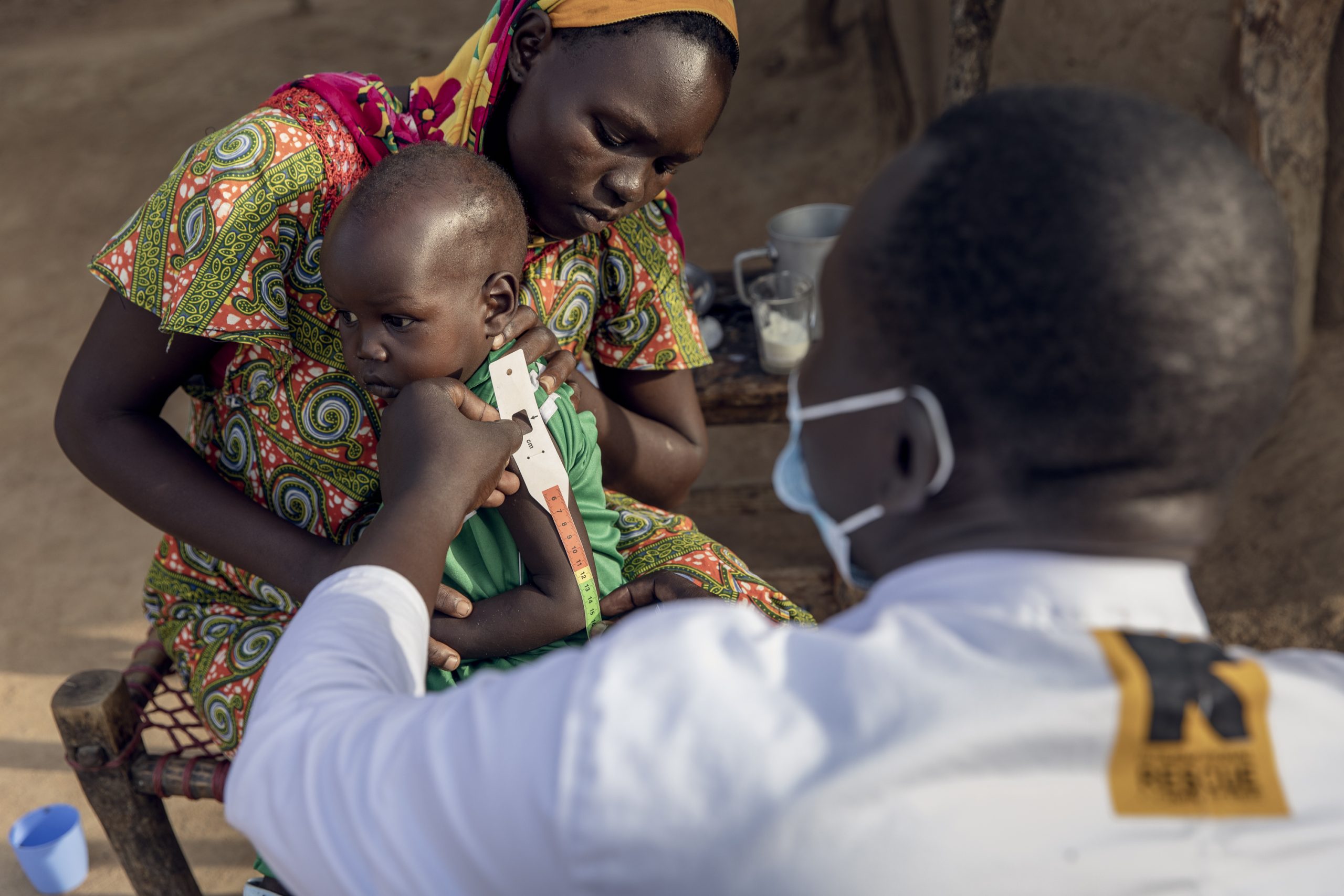 James from the IRC cares for 2-year-old Peter who received treatment from the IRC’s nutrition program in Northern Bahr El Ghazal, South Sudan. ©The International Rescue Committee Photo: Adrienne Surprenant for the IRC.