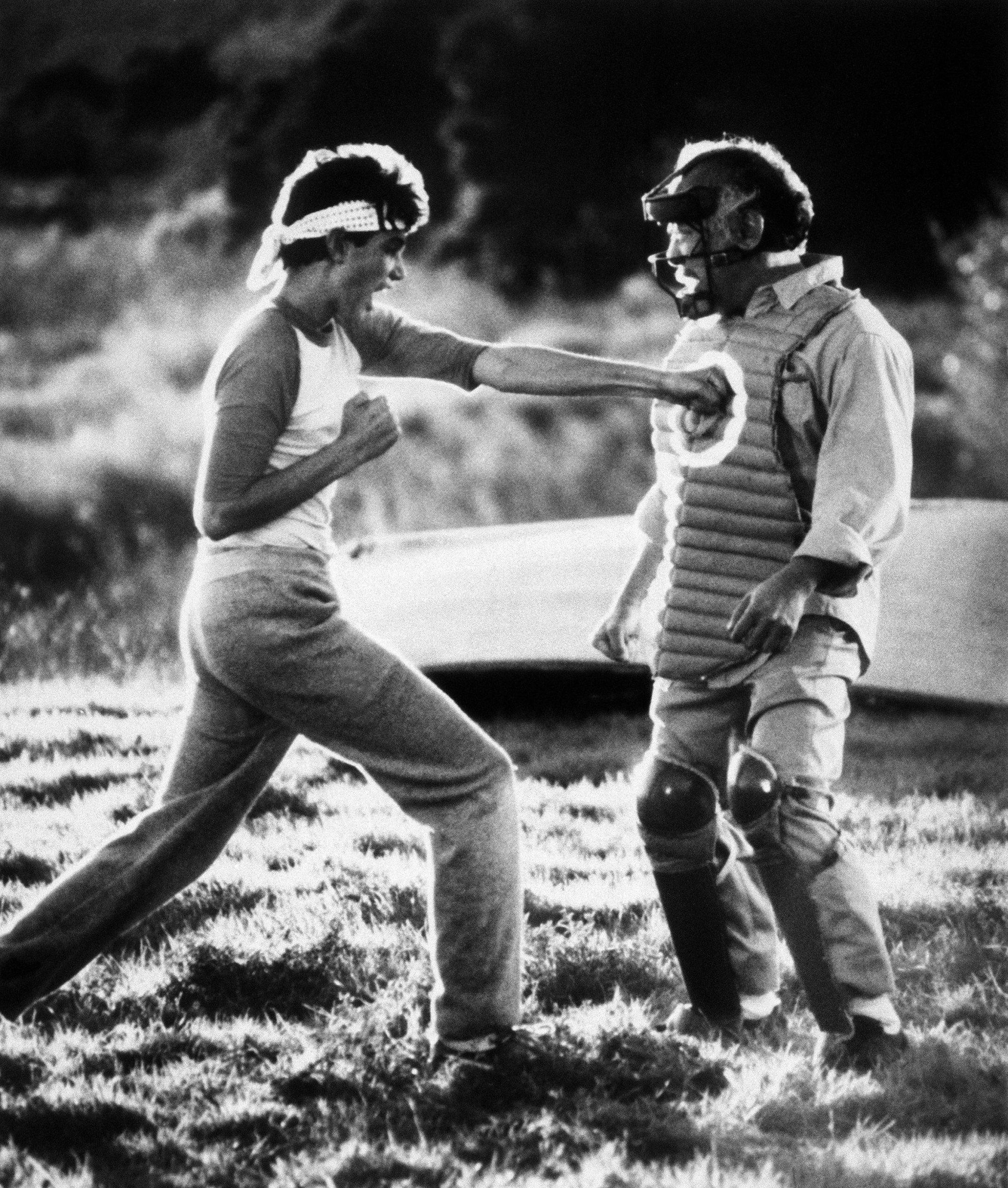 Daniel (Ralph Macchio) and Mr. Miyagi (Pat Morita) in The Karate Kid, dir. John G. Avildsen, 1984.