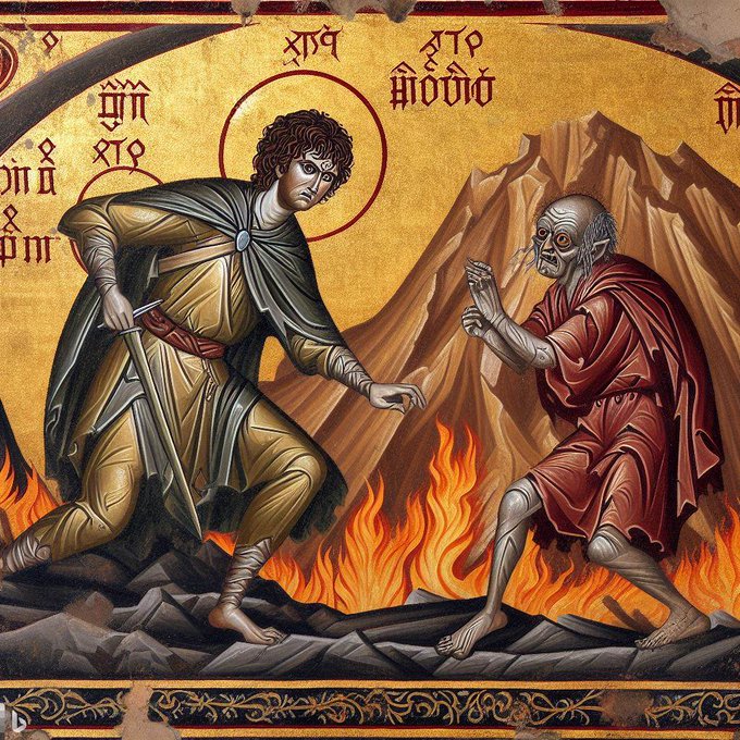 Also: “Dad Sadly Informs Kids A Robber Broke In Last Night And Only Stole Their Reese’s Cups,” and SNL’s take on the Hallmark Channel doing Halloween specials (below). And Tolkien fans will need to run, not walk, and check out this collection of LotR scenes recreated in the style of Orthodox iconography.